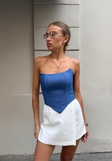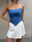 Стильний корсетний топ із щільного деніму — ідеальний баланс між трендовістю та жіночністю. Модель має чітку корсетну конструкцію, яка красиво формує силует, підкреслює талію та лінію плечей. Прямий відкритий верх додає образу мінімалістичної елегантності, а подовжений клиноподібний низ візуально витягує фігуру.