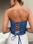 Особливий акцент — ефектна шнурівка на спинці. Вона не лише виглядає виразно, а й дозволяє регулювати посадку для максимального комфорту. Денім тримає форму, водночас залишається приємним до тіла.
