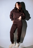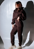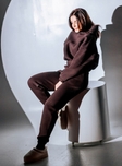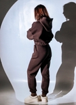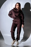 Костюм складається з худі вільного крою з об’ємним капюшоном та джогерів із м’якою еластичною резинкою на талії й манжетах. Посадка продумана до дрібниць: худі красиво лягає по фігурі, не сковуючи рухів, а штани забезпечують максимальний комфорт у повсякденному носінні.