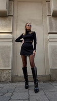 Стильний чорний костюм із бандажного трикотажу — акцентний варіант для сміливих і сучасних образів. Щільна, еластична тканина добре тримає форму, підкреслює фігуру та забезпечує комфортну посадку.