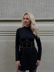 Елегантна сукня з бандажного трикотажу, що ідеально підкреслює фігуру та створює витончений силует. Щільний, еластичний матеріал м’яко облягає тіло, забезпечуючи комфорт і бездоганну посадку. Акцент на талії у вигляді вишуканих камінців додає образу розкоші та візуально формує жіночні пропорції.