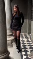 сукня Cherry. Коротка сукня з бандажного трикотажу. Облягаючий силует, міні довжина. Має стійку під шию, що додає елегантності та стриманості образу. size xs/s, m/lколір молочний, червоний , чорний (у чорному кольорі сукня пошита у двох довжинах)