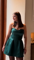 Елегантна сукня з атласу, що поєднує витонченість і чітку форму. Модель виконана з гладкої атласної тканини з делікатним блиском, яка красиво тримає силует і підкреслює фігуру.