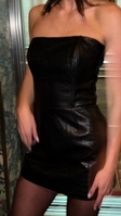 Ця розкішна міні-сукня з високоякісної екошкіри — must-have для тих, хто любить сміливі образи з акцентом на жіночність. Фактура під рептилію додає ефектності, а продуманий крій робить силует виразним без зайвих зусиль.