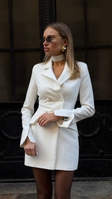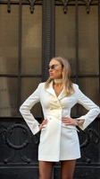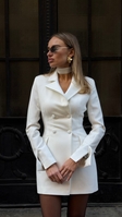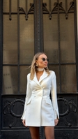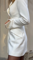 Сукня-піджак з чокером у комплекті — власне виробництвоSAGANЕлегантна міні сукня-піджак у молочному відтінку створюєвишуканий силует завдяки приталеному крою таакцентованим плечам. Подвійний ряд ґудзиків, фігурні клапани кишень і розрізи на рукавах додають композиції сучасності. Образ доповнює стильний чокер у тон, що підкреслює шию та робить лук ще більш виразним.Підійде для особливих подій, ділових виходів і fashion-моментів у місті.колір молочний, коричневий, чорнийsize xs, s, m, lдовжина збільшується з кожним наступним розміром