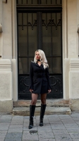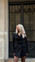 Сукня-піджак з чокером у комплекті — власне виробництвоSAGANЕлегантна міні сукня-піджак у чорному кольору, створює вишуканий силует завдяки приталеному крою та акцентованим плечам. Подвійний ряд ґудзиків, фігурні клапани кишень і розрізи на рукавах додають композиції сучасності. Образ доповнює стильний чокер у тон, що підкреслює шию та робить лук ще більш виразним.Підійде для особливих подій, ділових виходів і fashion-моментів у місті.колір молочний, коричневий, чорнийsize xs, s, m, lдовжина збільшується з кожним наступним розміром